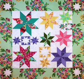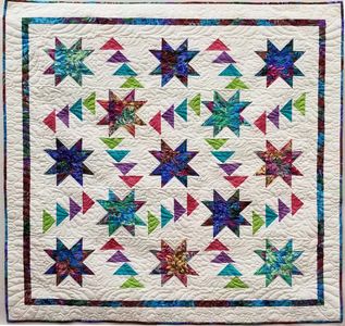A quick and easy summer Carpenter Star that is a great use for those scraps, charm squares, 6” Strips, layer cakes, fat quarters, or yardage you have been collecting. Six sizes included! All sizes are made with the same number of units; the size of the half square triangle units determines the size of the quilt.