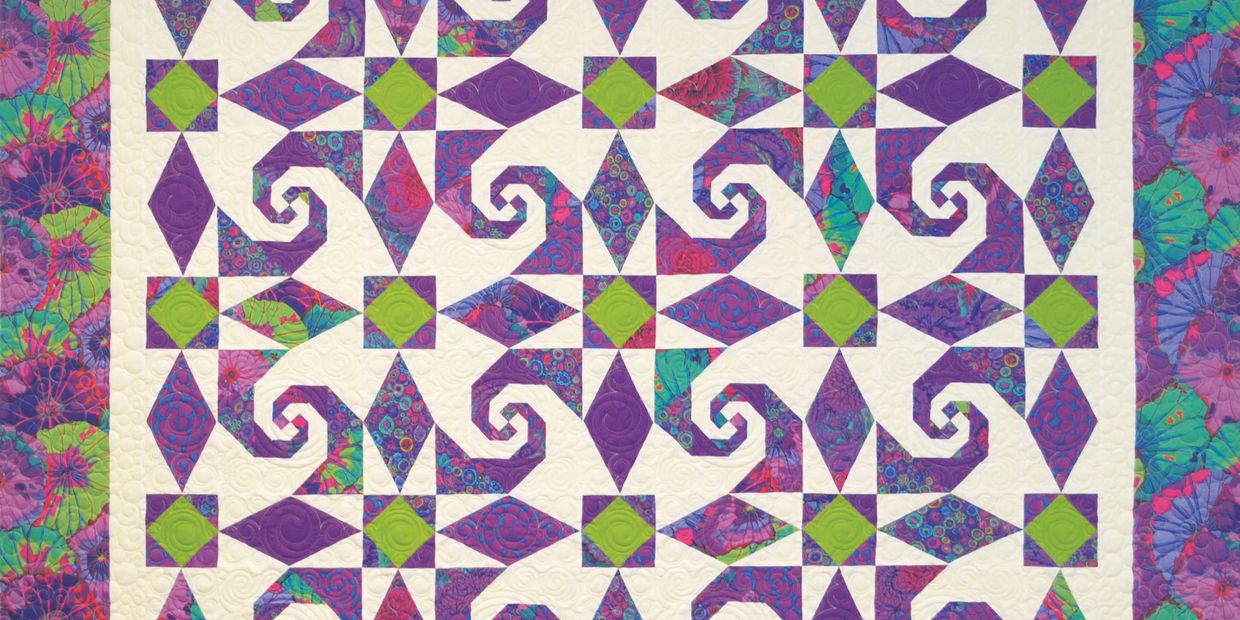 Michelle designed this modern play on Snail’s Trail quilt layout in honor of a longtime friendship. Offered in three sizes (Throw, Twin, Queen).